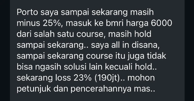- Saat harga turun & rugi, saya kesal. Tapi kesal ke siapa? Ke mentor atau ke diri sendiri?