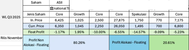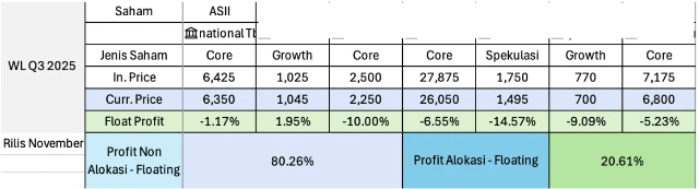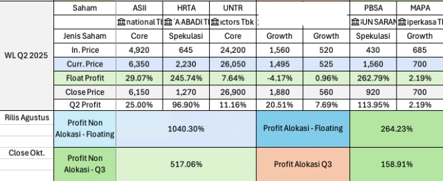 3. Q2 2025 - Profit non-alokasi 517% & Alokasi 159%! Di Q2 sendiri adalah salah satu kenaikan terbesar dari IHSG jadi wajar saham-saham di Watchlist (dengan fundamental baik) ikut terdampak besar juga dalam waktu yang singkat (1 kuartal). Dan kalau floating sampai saat ini profit non alokasi naik menjadi 1.040% & alokasi 264%.